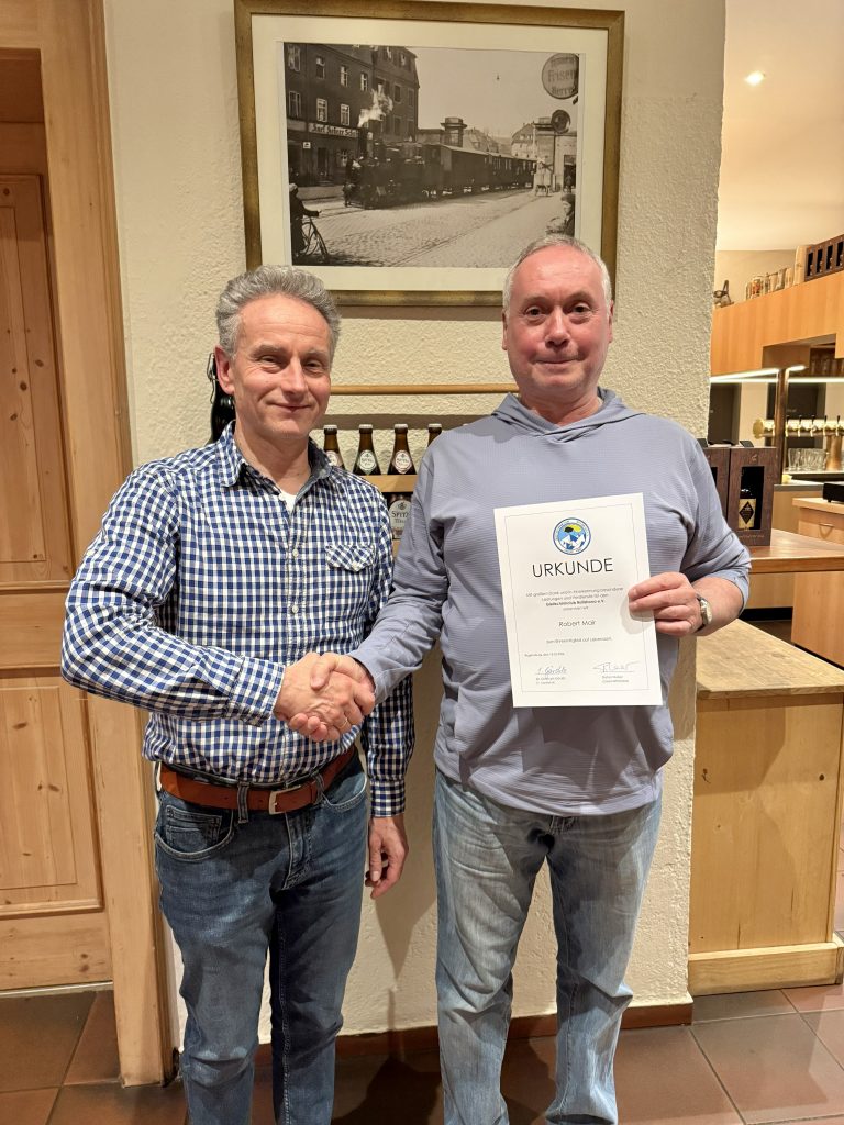 Wir freuen uns sehr mit Michael ein neues Gesicht im Vorstand begrüßen zu dürfen. Herzlichen Dank für die Übernahme des Amtes! Robert war bei seiner Wiederwahl 2025 nur für 1 Jahr angetreten. Um im 2-Jahres-Turnus des übrigen Vorstands zu bleiben, wird Michael sein Amt daher zunächst für 1 Jahr ausüben. Der gesamte Vorstand wird dann wieder Anfang 2027 gewählt. Ein ganz besonderer Dank gilt dem bisherigen Kassier Robert, der das Amt ganze 20 Jahre inne hatte! Aufgrund besonderer Verdienste für den Verein wurde Robert zum Ehrenmitglied auf Lebenszeit ernannt.